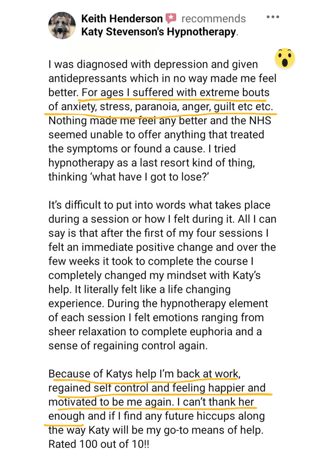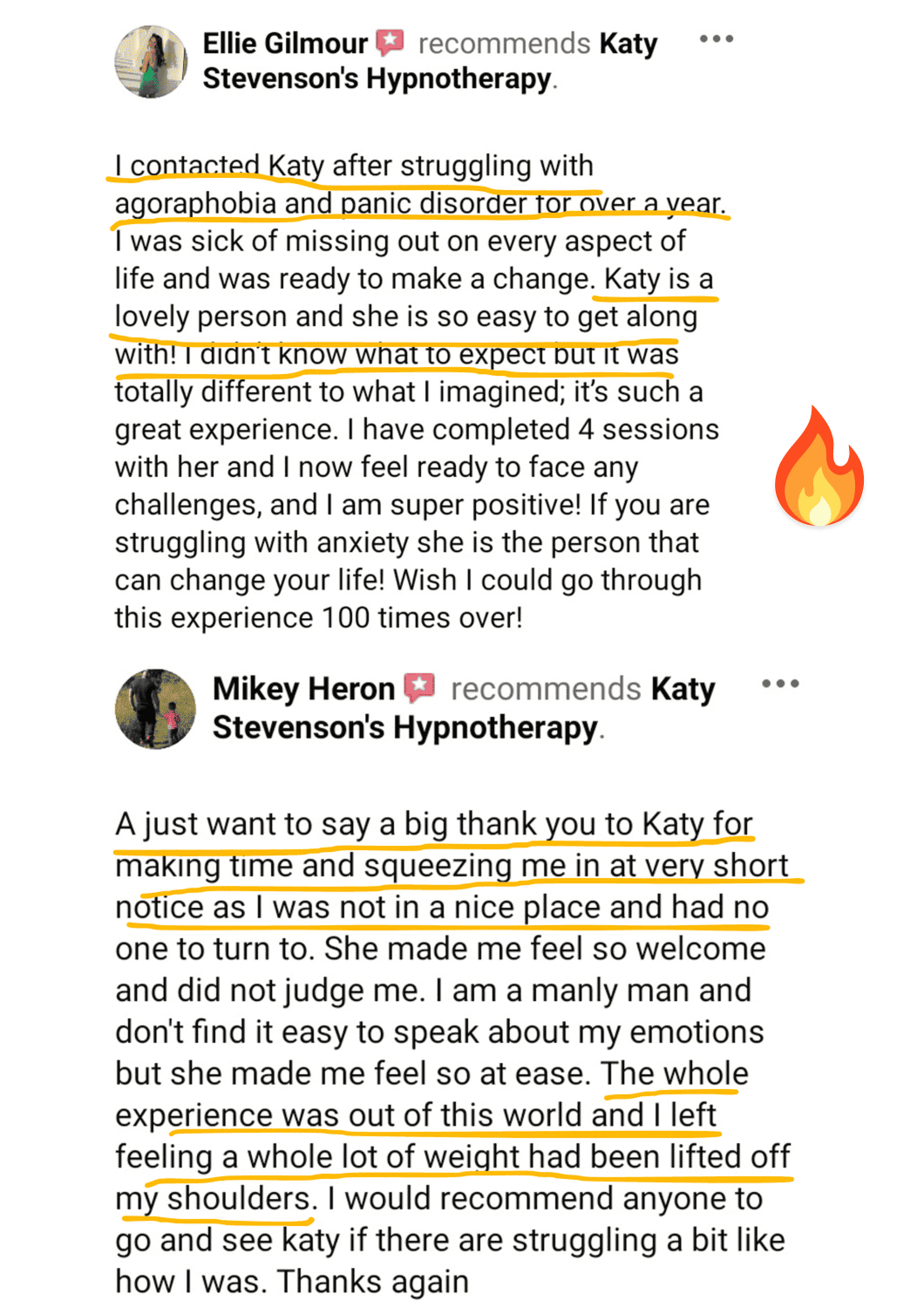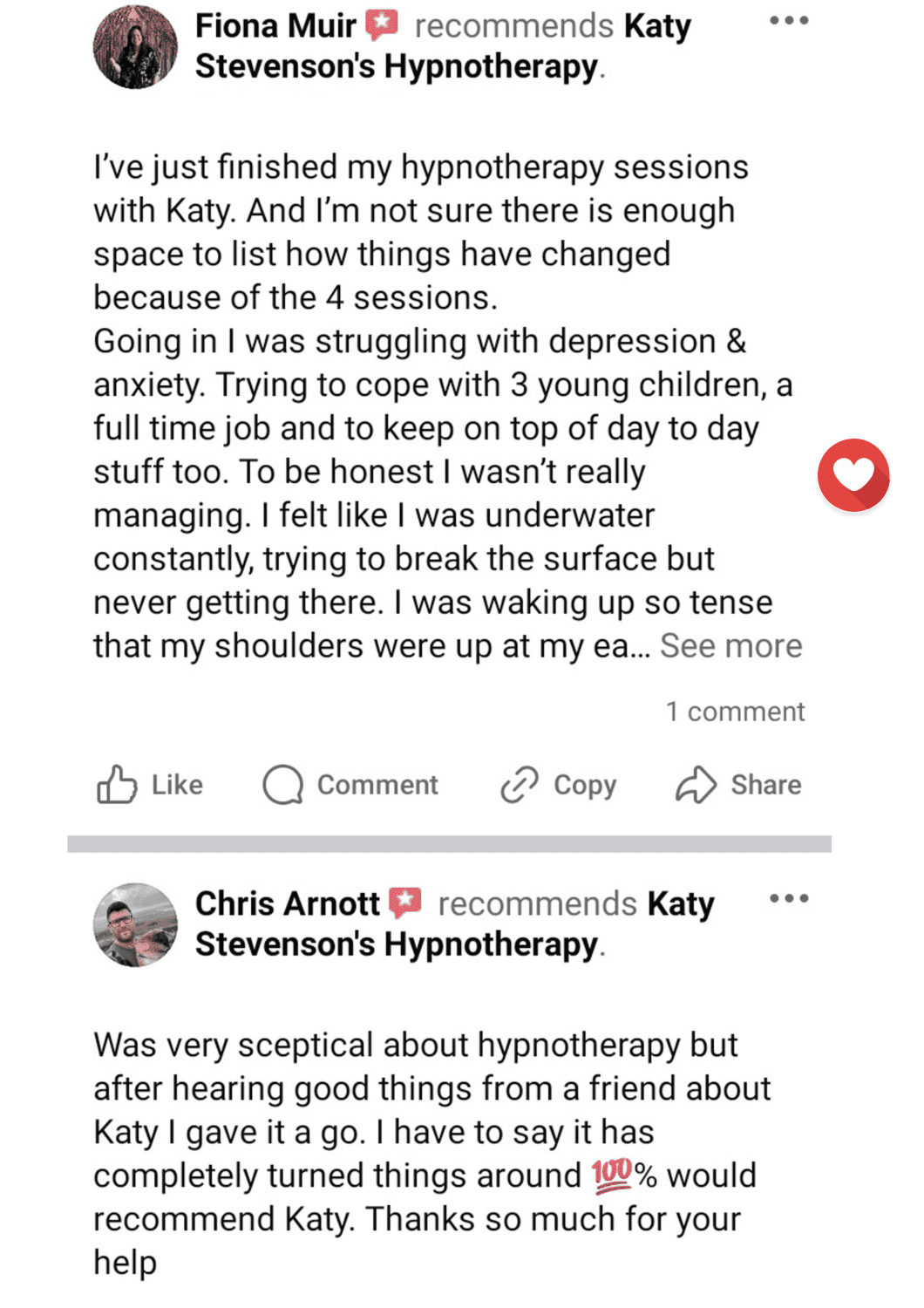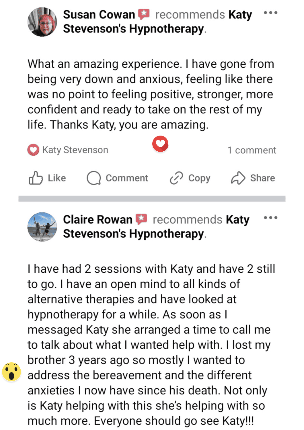 And to anyone considering it — I 100% recommend Katy. I honestly didn’t think anything would ever work… but just four sessions with her have completely changed my life.