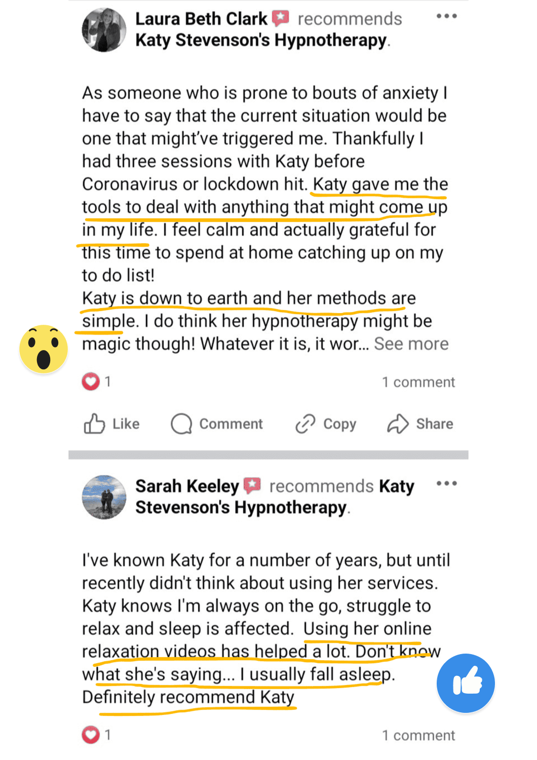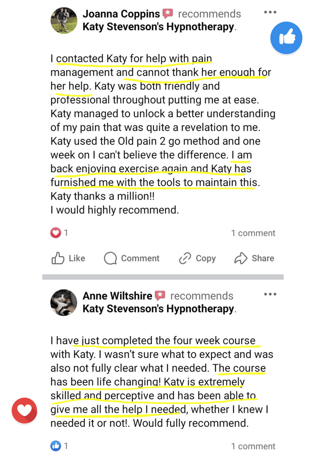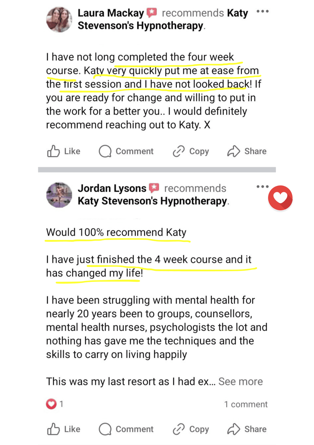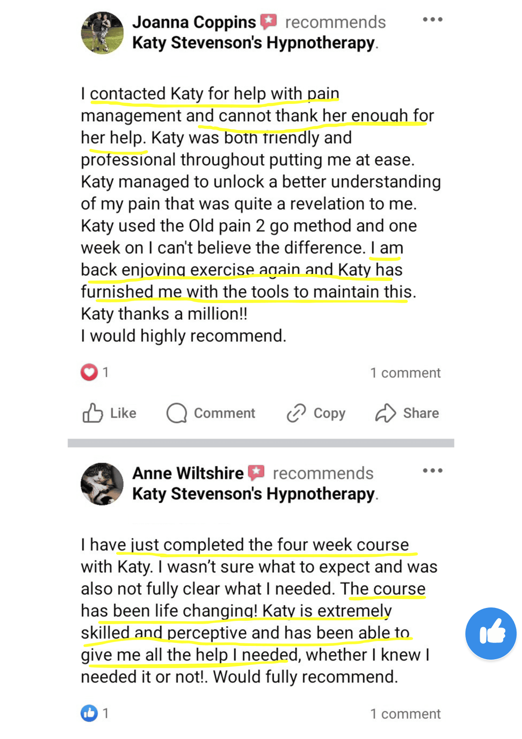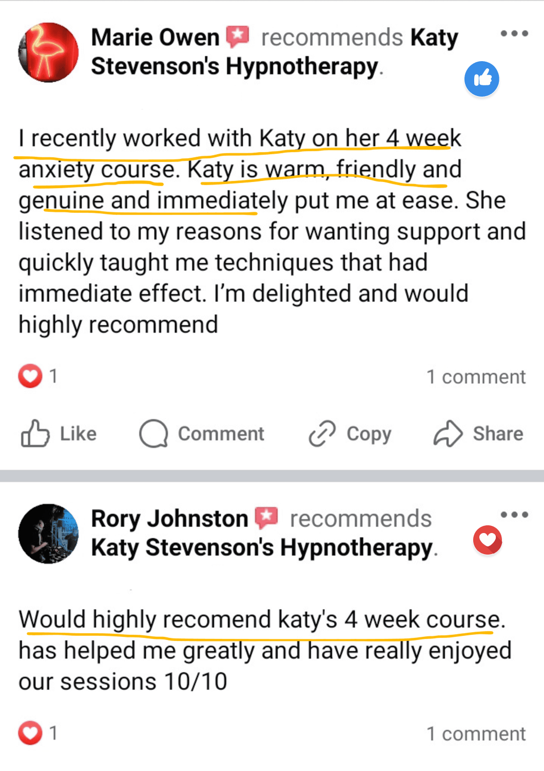 And to anyone considering it — I 100% recommend Katy. I honestly didn’t think anything would ever work… but just four sessions with her have completely changed my life.